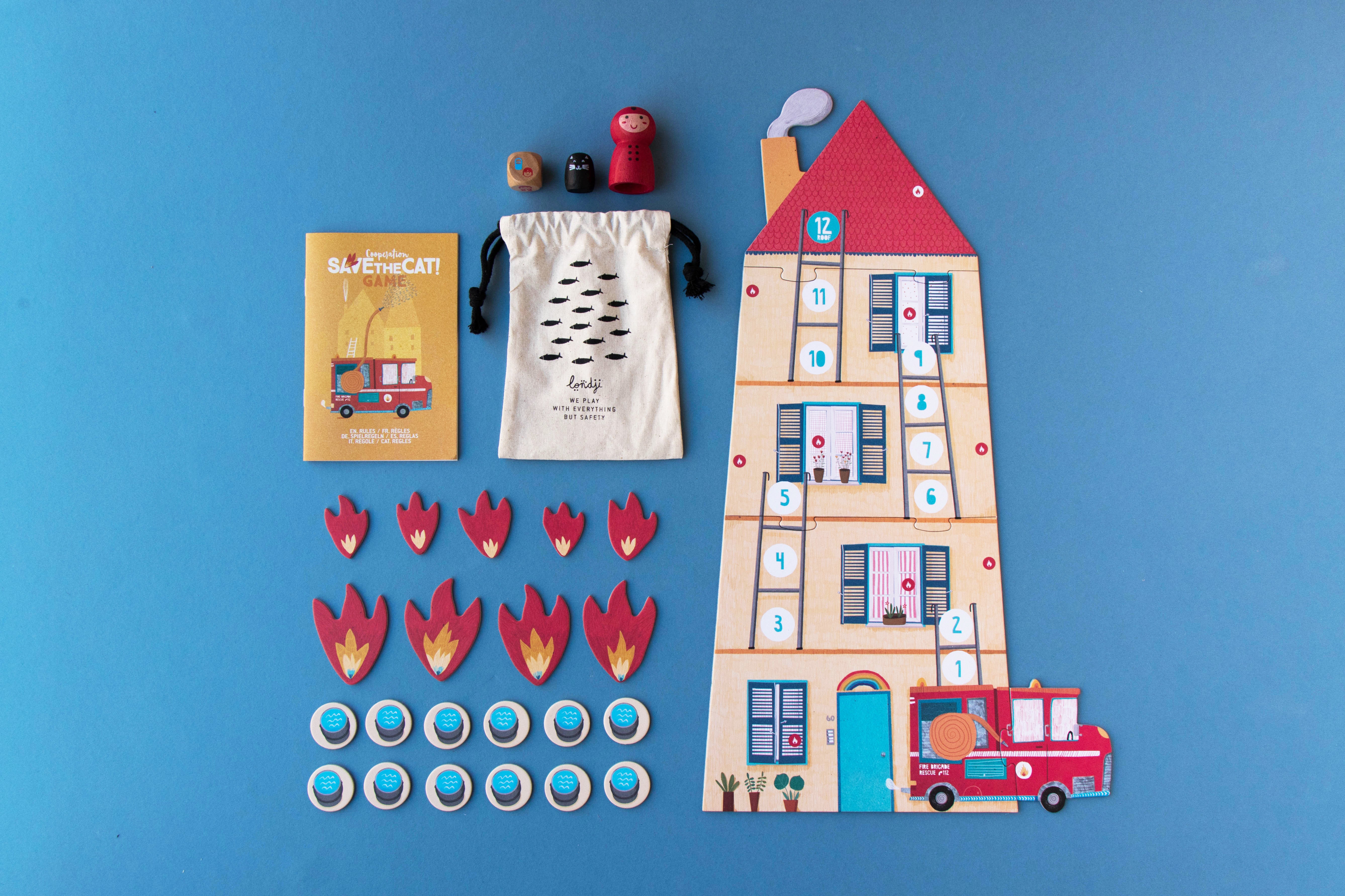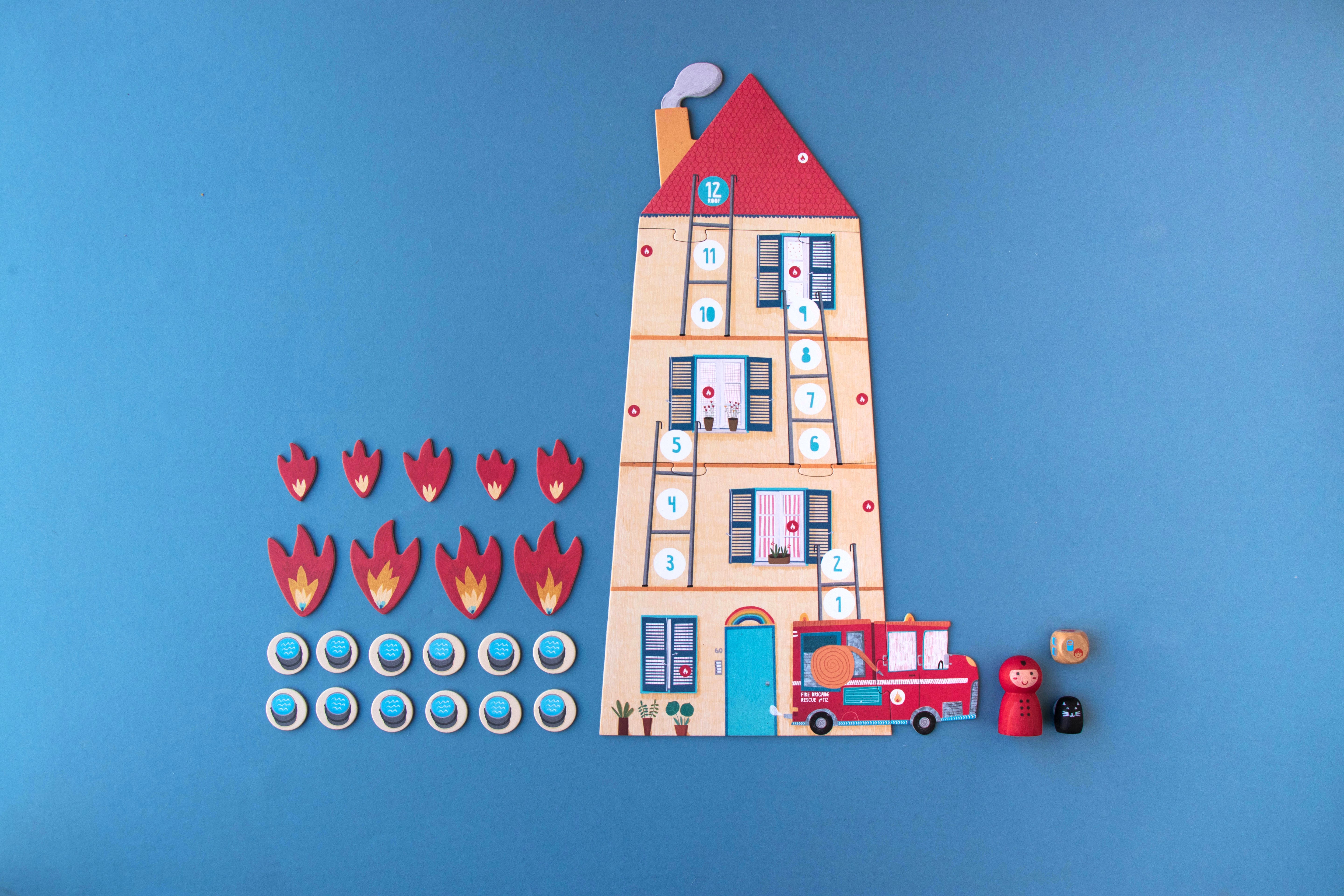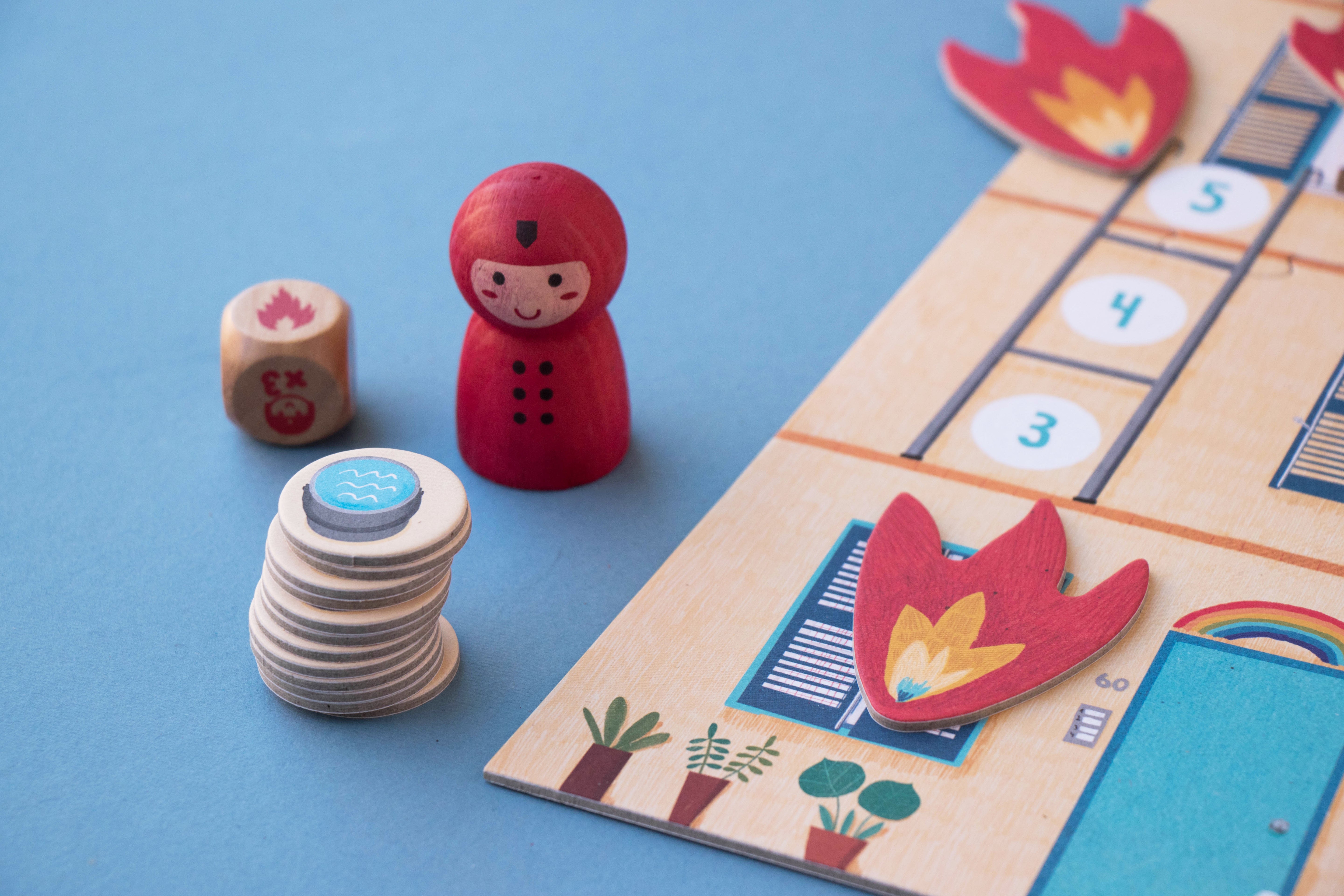 A co-operative and family board game in which we will help the firefighter to save the cat trapped in the fire. Made with love in Barcelona.