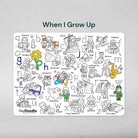 Each mat is thoughtfully designed and features an educational theme (ie space, letters, farm animals, numbers) so your curious kids can learn as they trace, draw and colour!